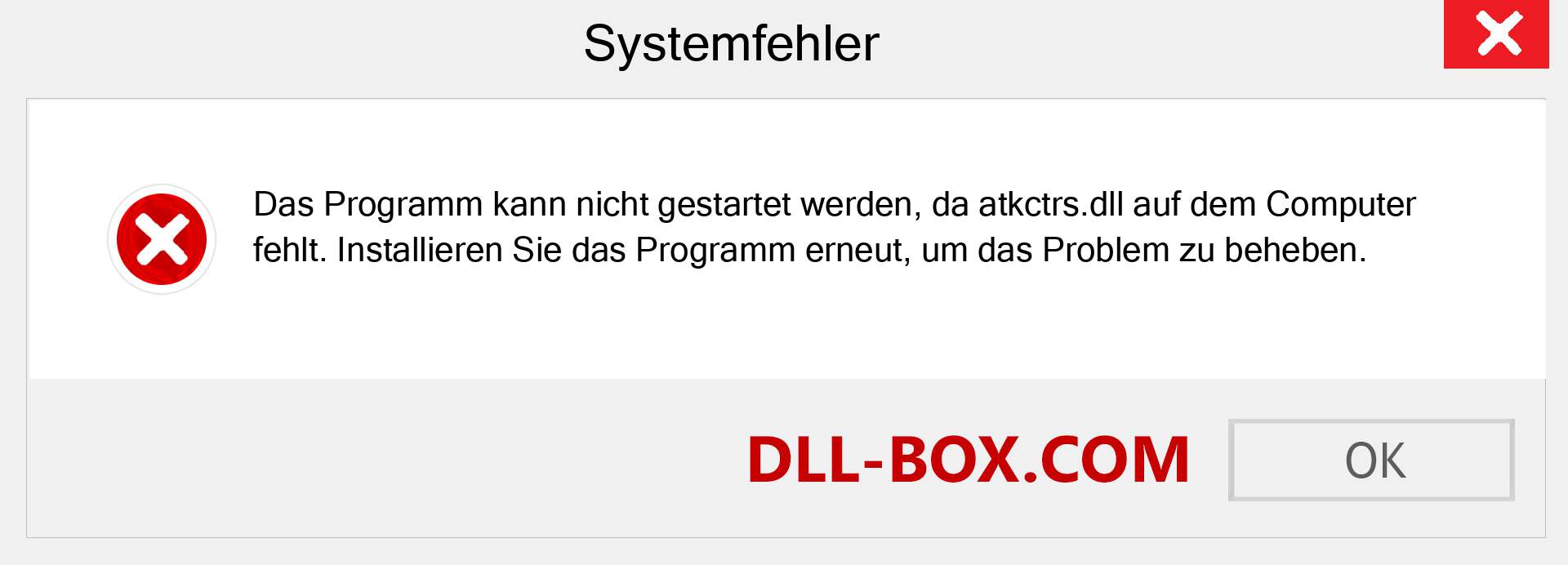 2. Beim Starten ist ein Problem aufgetreten. atkctrs.dll Das angegebene Modul konnte nicht gefunden werden.